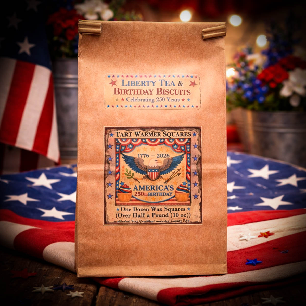 Whether you freshen up your home or create a cozy atmosphere, these Birthday Biscuits wax tarts bring warmth, comfort, and a touch of patriotic charm.