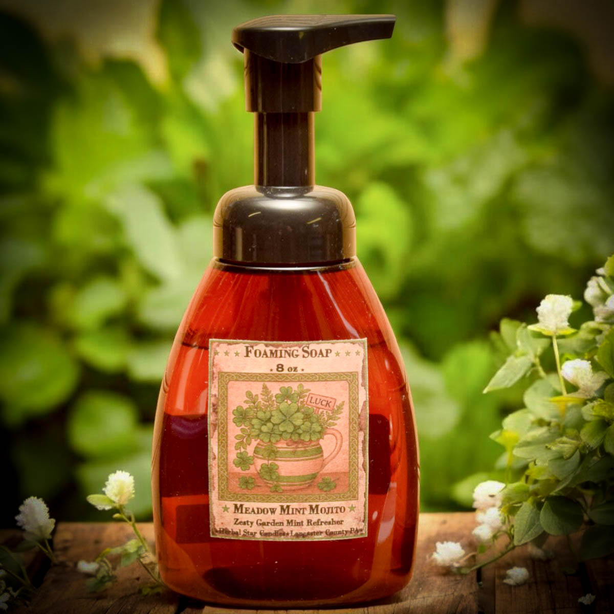 Meadow Mint Mojito Foaming Soap – 8 oz offers a fresh, garden-inspired way to enjoy the clean green scent you already love in our Meadow Mint candle and wax tarts.