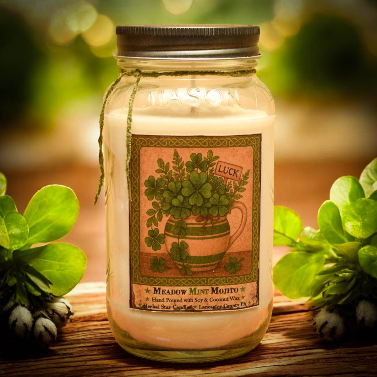 Meadow Mint Mojito Mason Jar Candle-24 oz Everyday Label