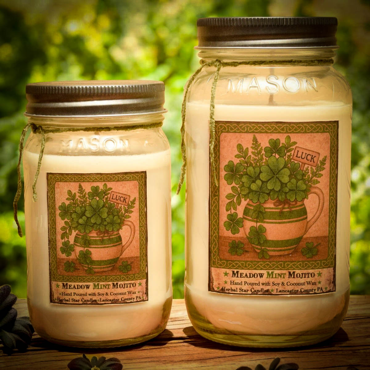Meadow Mint Mojito is a wonderful garden scent. Cool, fresh, and invigorating, our Meadow Mint Mojito fragrance is a true version of the classic mojito cocktail. This scent fuses notes of freshly muddled garden mint with tropical undertones of pineapple, lime, and rum. And it is strong. But not minty strong, just a very pleasant fill the room smell that has a definite “green” vibe. We knew it was a perfect scent for St Patricks Day, but this one is too good for one holiday. We will have a version later that has a garden mint picture.