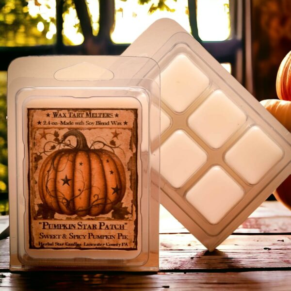 Enjoy the scent of sweet and spicy pumpkin pie without lighting a flame! Our Pumpkin Star Patch Mini Wax Tarts come in a convenient 2.4 oz clamshell package with 6 break-apart cubes, perfect for any standard wax warmer.