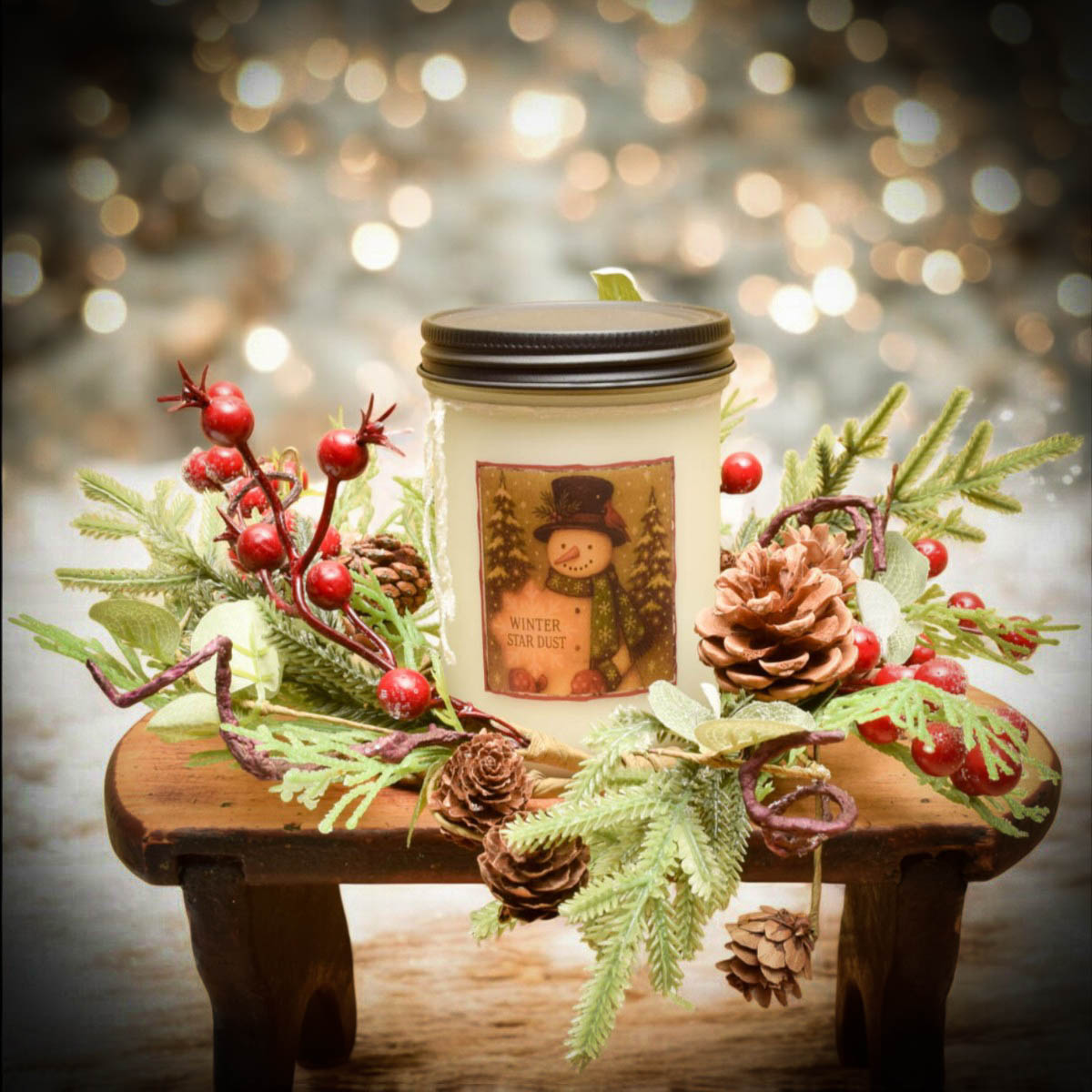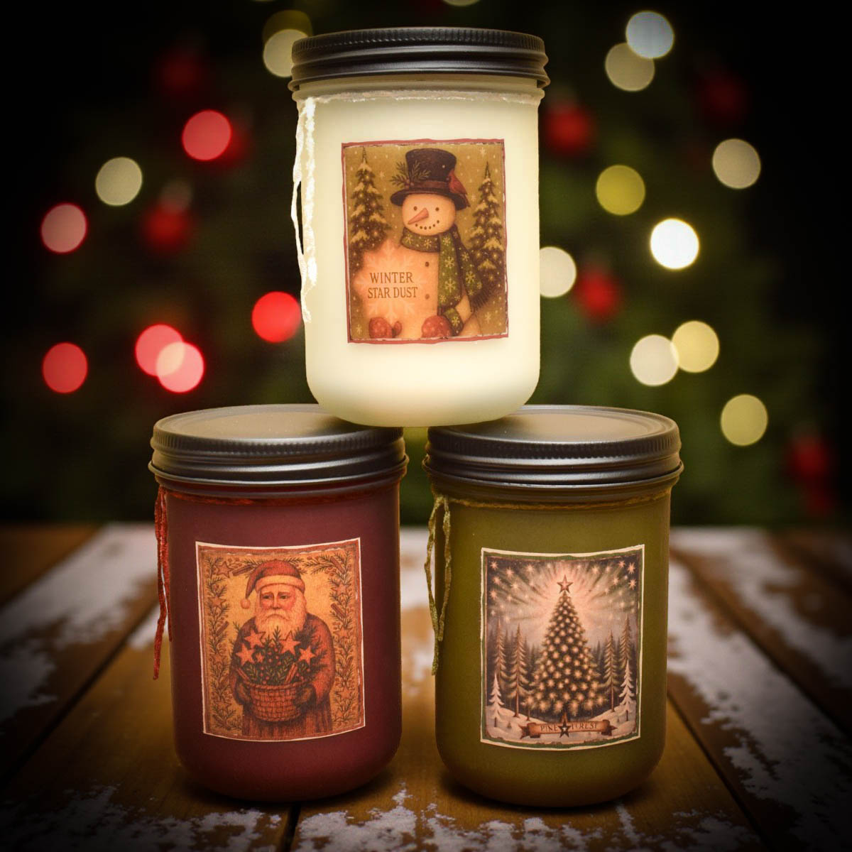 This candle is part of our Limited Frosted Farmhouse Christmas Collection, featuring three festive designs: white Winter Star Dust, red Old Santa Cinnamon, and green Pine Star Forest. Together they make a stunning display of color and scent for the holidays. Because they’re limited, they’re only available for the season—so grab yours before they’re gone!